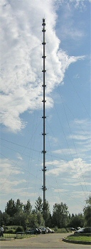 AMM-310 is commissioned in 1959. AMM-310 represents a tubular structure with a height of 310 m and diameter 2,3 m; it is installed on a spherical fulcrum, and is supported in a vertical position with the aid of multi-tier rope system. There is a lift inside a mast for realization of experiments and upkeep of an equipment.There are 13 working platforms with four sliding probes with length of 6 m for the arrangement of a measuring apparatus. AMM -310 does not have analogs in Russian Federation and countries of CIS. It is distinguished by equipment and integrated approach in measurement of parameters, including meteorological magnitudes (temperature and humidity of an air, velocity and direction of a wind, pressure), turbulent characteristics, optical performances on sloping lines. The parameters of solar radiation, deposits, clouds and radio-activity of an air, and also velocity and direction of a wind near the surface are measured on the meteorological ground near AMM-310.. The gathering and handling of an information obtained with the aid of the measuring complex AMM-310 is carried out on the base of computer technology. The basic virtue and advantage of AMM-310 in a comparison with the other methods of research of a boundary layer of an atmosphere is the possibility of a synchronous measurement of meteorological and other physical magnitudes in a 300-meter stratum with any time and high-altitude resolution under any weather conditions.